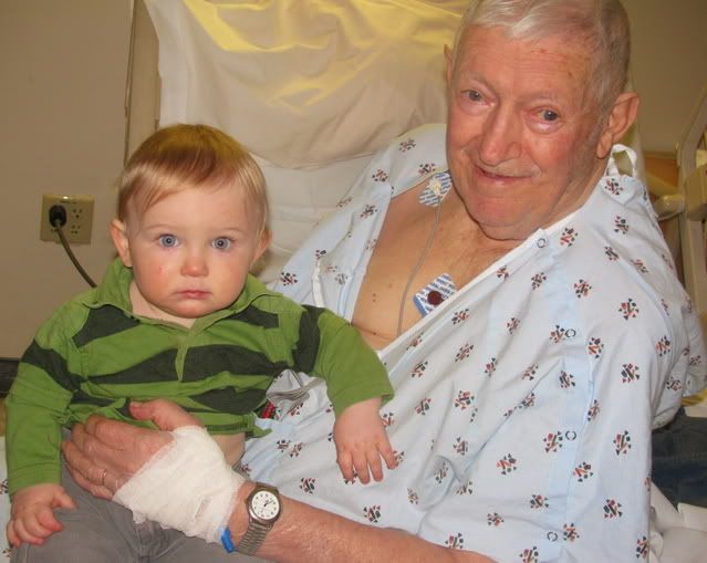 He lives in Independence, KS but had to come to St. Francis in Wichita. Which means we could easily go visit. He and my grandma hadn't seen any of us since last Feb. when Mason was born. So we were very excited to visit, although we wish it was under better circumstances.