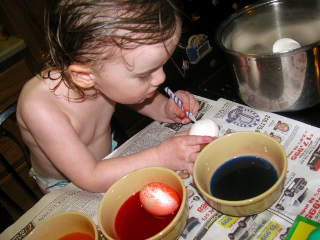 I LOVE how they dye eggs with no shirt on! How funny! I just laughed when I saw the pictures. Your family is so sweet.